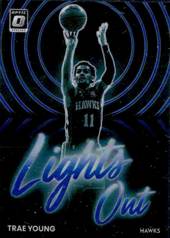 2022-23 Panini Donruss Optic Lights Out Trae Young Blue Prizm /49