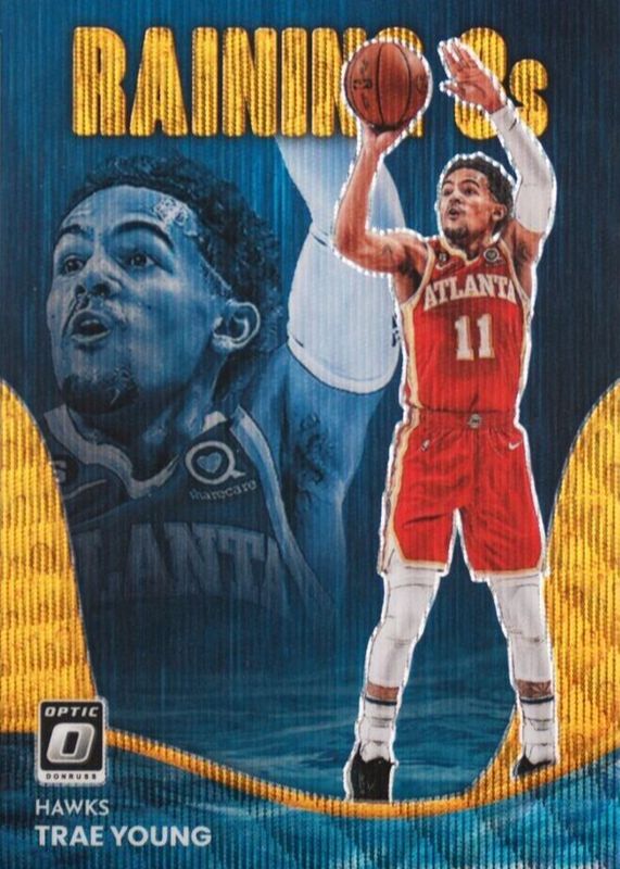Trae Young 2022 Optic #8 Raining 3s - Gold Wave /10 RAW