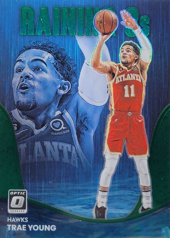 Trae Young 2022 Optic #8 Raining 3s - Green /5 RAW Price Guide