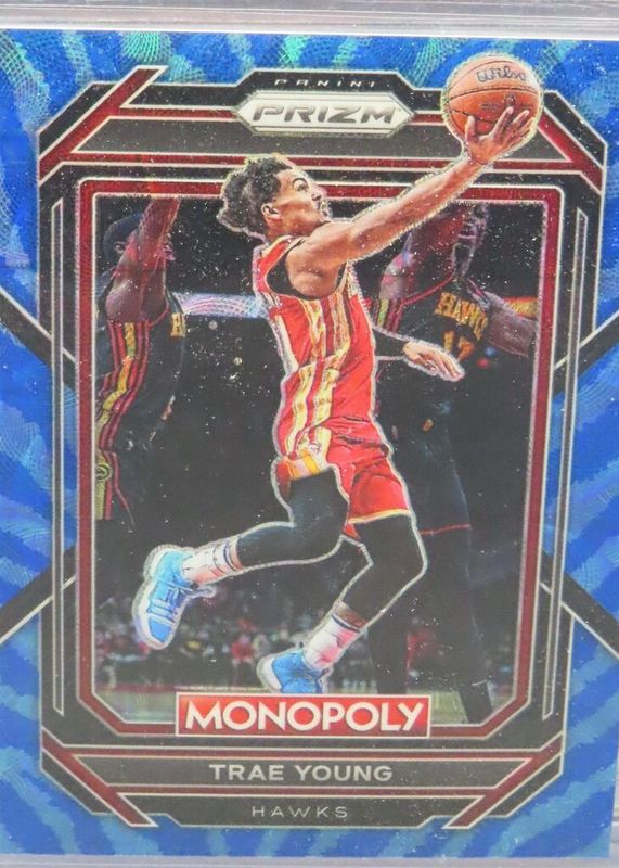 Auctions Ending Soon for Trae Young 2022 Prizm Monopoly #1 Boardwalk Blue Tiger Stripe RAW