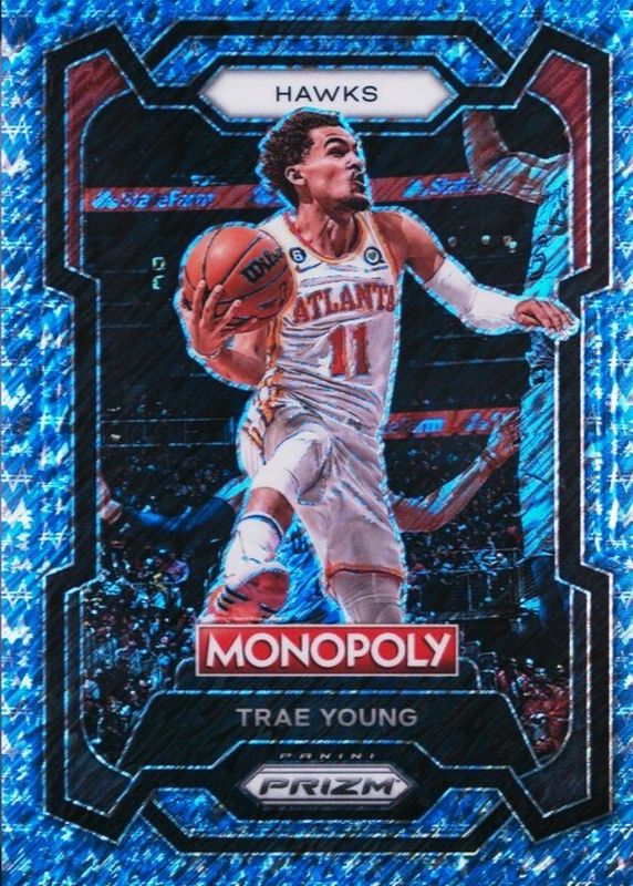 Trae Young 2023 Prizm Monopoly #4 Blue Millionaire Shimmer /10 RAW Price Guide