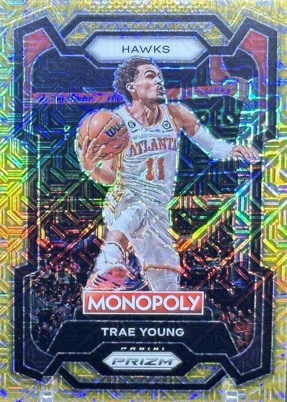 Best Prices Available For Sale of Trae Young 2023 Prizm Monopoly #4 Gold Millionaire Shimmer /500