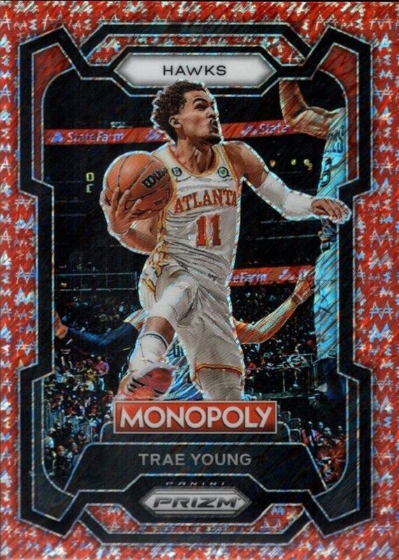 Best Prices Available For Sale of Trae Young 2023 Prizm Monopoly #4 Red Millionaire Shimmer /100