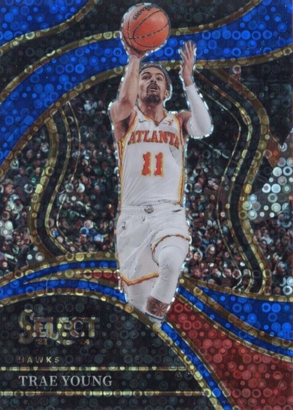 2023-24 SELECT TRAE YOUNG #43 Courtside BLUE DISCO PRIZM HAWKS /25