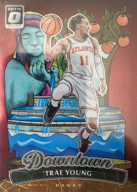 The Trae Young 2024 Optic #11 Downtown - Gold /10 card in Raw condition has not changed in price in the last 30 days and was last sold for $3,800.00 .