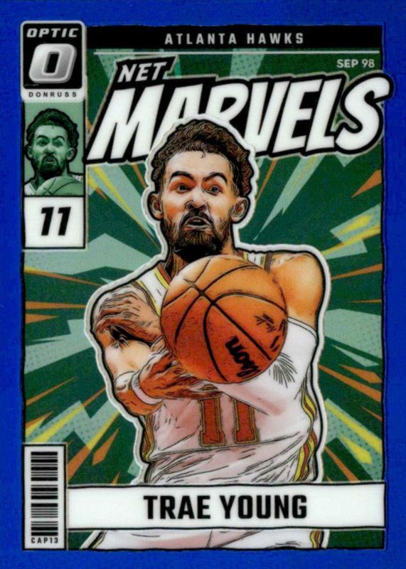 Recent Sales of Trae Young 2024 Optic #9 Net Marvels - Blue /49 Raw