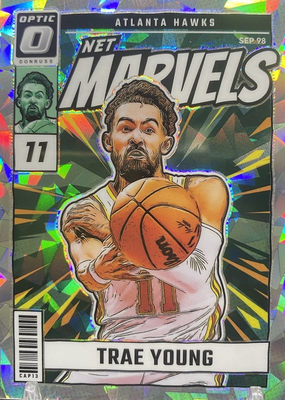 Recent Sales of Trae Young 2024 Optic #9 Net Marvels - Cracked Ice /25 Raw