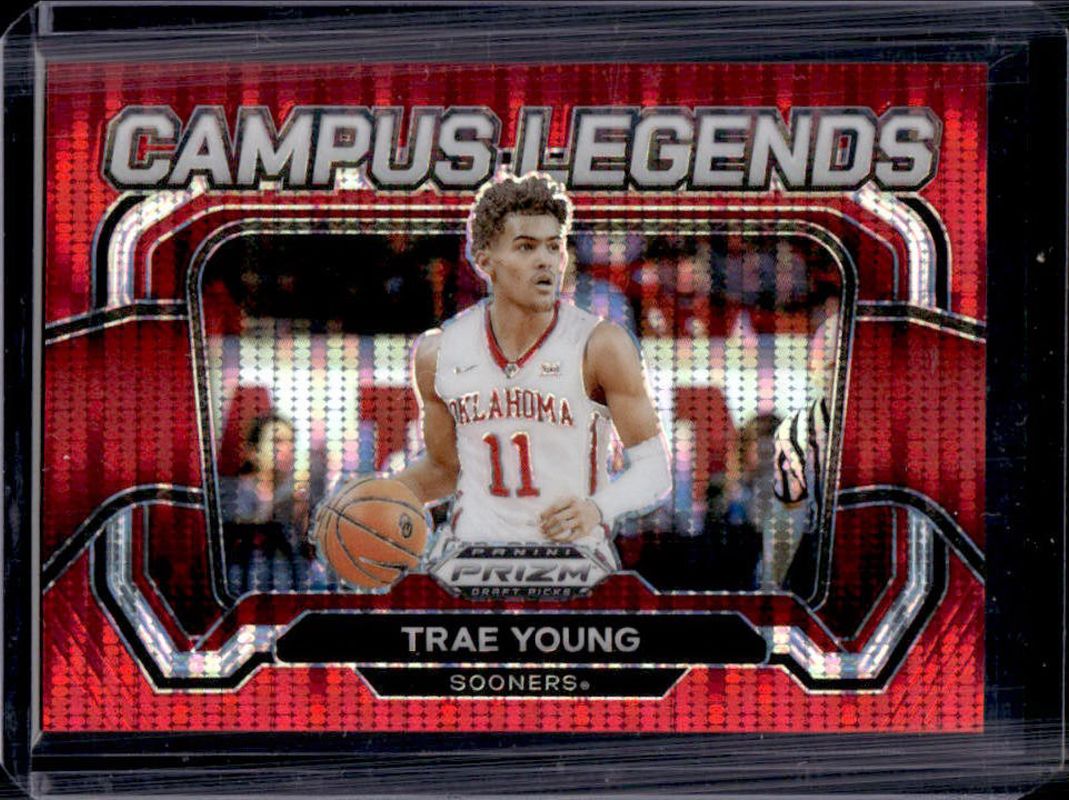 The Trae Young 2024 Prizm Draft Picks #7 Campus Legends - Red Pulsar /299 card is 1 of 179 Trae Young's card variations in the 2024 Prizm Draft Picks set being tracked by Sports Card Investor, including #49b Base, #49 Base, #49 Green, #49b Green, and #49 Green Wave.