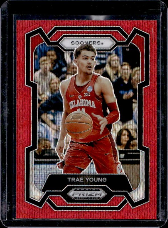 The Trae Young 2024 Prizm Draft Picks #49 Red Wave card is 1 of 179 Trae Young's card variations in the 2024 Prizm Draft Picks set being tracked by Sports Card Investor, including #49b Base, #49 Base, #49 Green, #49b Green, and #49 Green Wave.