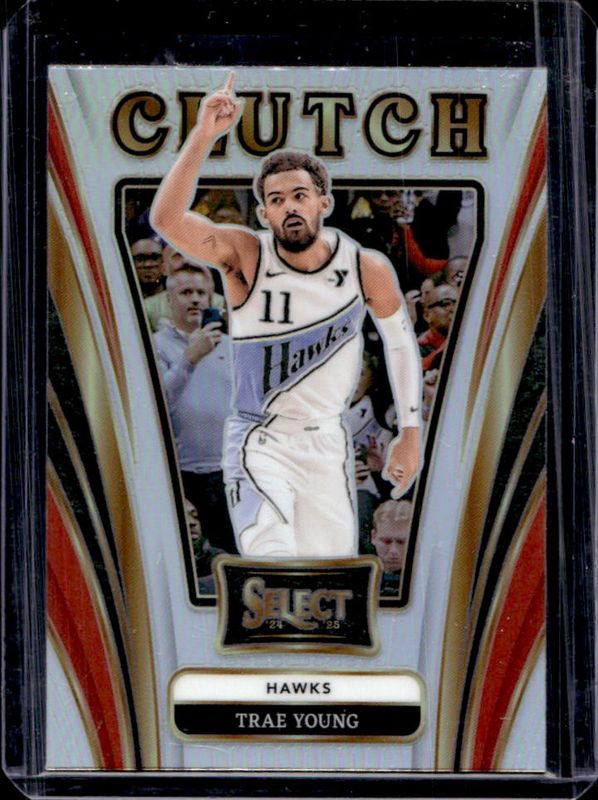 The Trae Young 2024 Select #23 Clutch Silver card is 1 of 268 Trae Young's card variations in the 2024 Select set being tracked by Sports Card Investor, including Concourse, Courtside, Mezzanine, Premier Level, and Concourse Blue Cracked Ice.