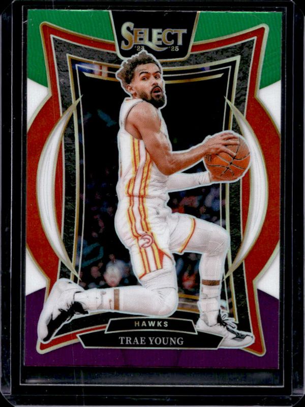 The Trae Young 2024 Select #63 Concourse Green White Purple card is 1 of 268 Trae Young's card variations in the 2024 Select set being tracked by Sports Card Investor, including Concourse, Courtside, Mezzanine, Premier Level, and Concourse Blue Cracked Ice.