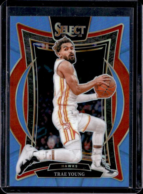 The Trae Young 2024 Select #63 Concourse Light Blue /299 card is 1 of 268 Trae Young's card variations in the 2024 Select set being tracked by Sports Card Investor, including Concourse, Courtside, Mezzanine, Premier Level, and Concourse Blue Cracked Ice.