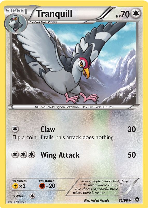 Pokemon Emerging Powers 81/98 Card - Tranquill