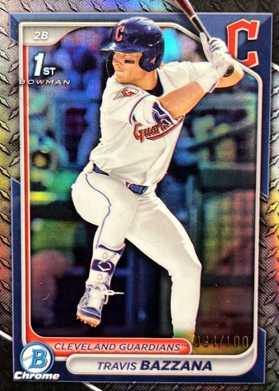 The Travis Bazzana 2024 Bowman Draft #BDC-1 Chrome - Steel Metal Refractor /100 (1st) card in Raw condition has moved down -$7.00 (-9.1%) in the last 30 days and was last sold for $70.00 .