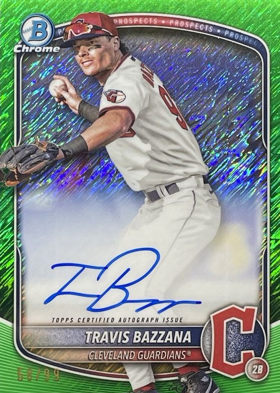 2025 Bowman Chrome TRAVIS BAZZANA Green Shimmer Auto 11/99 #CPA-TB Guardians