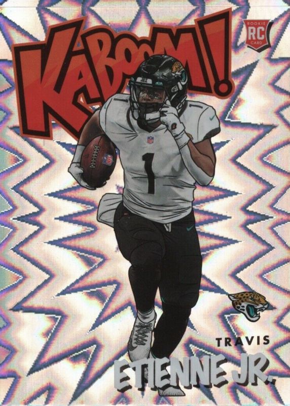 The Travis Etienne Jr. 2021 Absolute #K49 Kaboom! /(SSP) Rookie card in Raw condition has moved up $4.00 (+1.1%) in the last 30 days and was last sold for $375.00 .