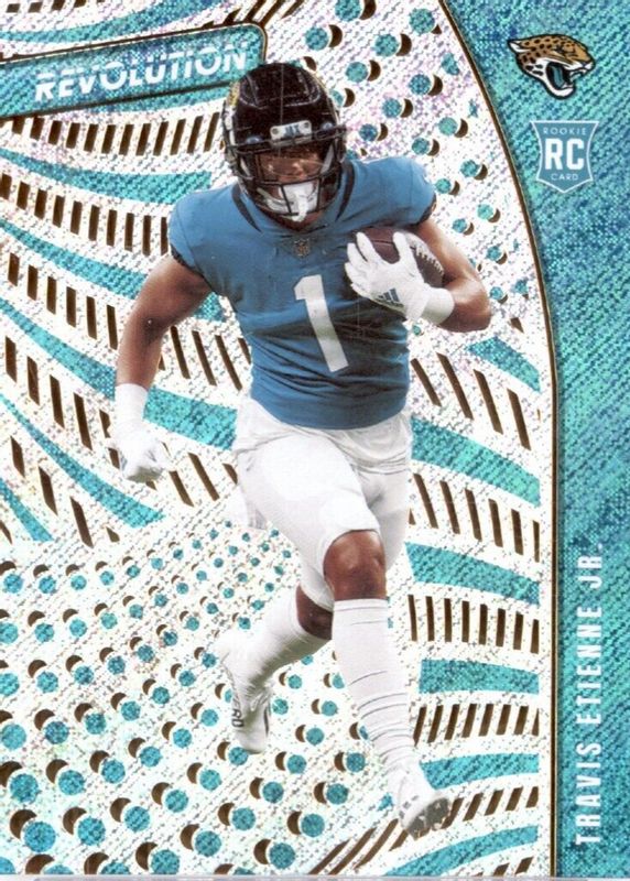 The Travis Etienne Jr. 2021 Chronicles #REV-10 Revolution Rookie card in PSA 10 condition has not changed in price in the last 30 days and was last sold for $16.50 .