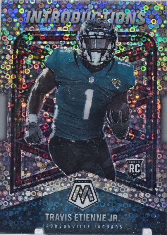 The Travis Etienne Jr. 2021 Mosaic #I-10 Introductions - No Huddle Rookie card in Raw condition has not changed in price in the last 30 days and was last sold for $3.25 .