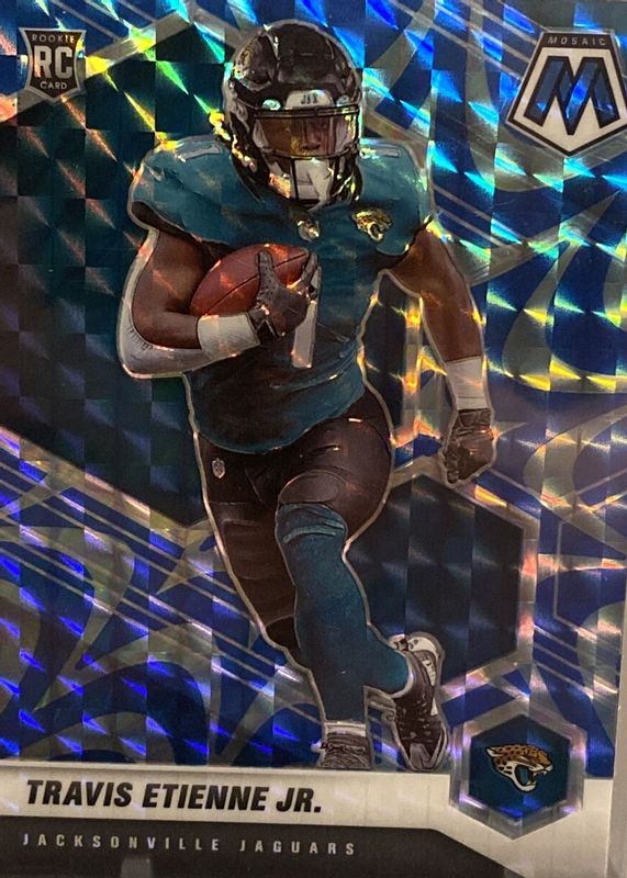 The Travis Etienne Jr. 2021 Mosaic #314 Reactive Blue Rookie card in Raw condition has moved down -$0.13 (-6.1%) in the last 30 days and was last sold for $2.00 .