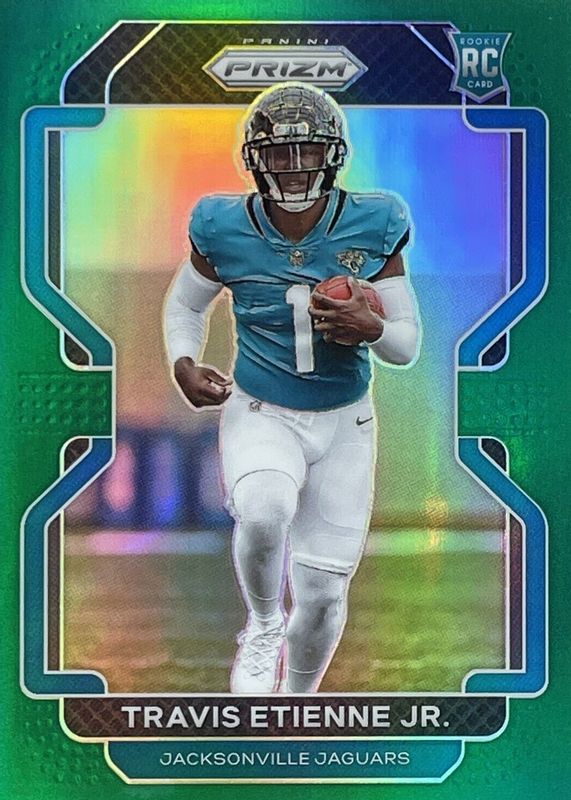TRAVIS ETIENNE JR 2021 Prizm ROOKIE (RC) Jags GREEN Prizm #344 + New Recruit