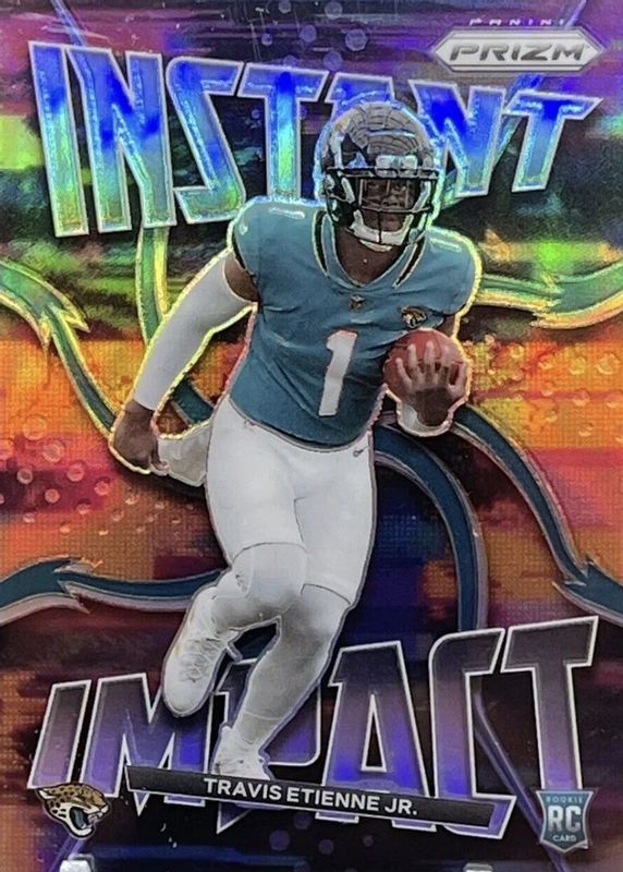 The Travis Etienne Jr. 2021 Prizm #II-13 Instant Impact /(SSP) Rookie card in Raw condition has not changed in price in the last 30 days and was last sold for $13.00 .