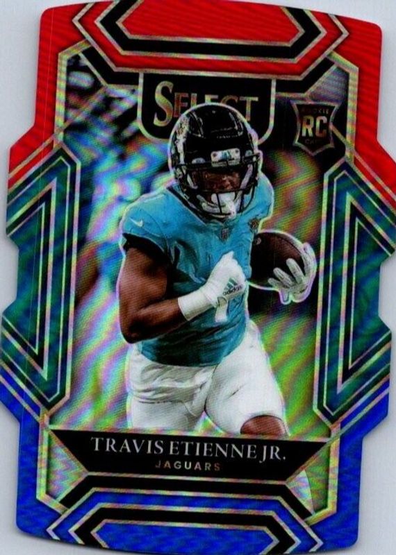 2021 Panini Select #254 Travis Etienne Jr. Red and Blue Prizm Die Cut