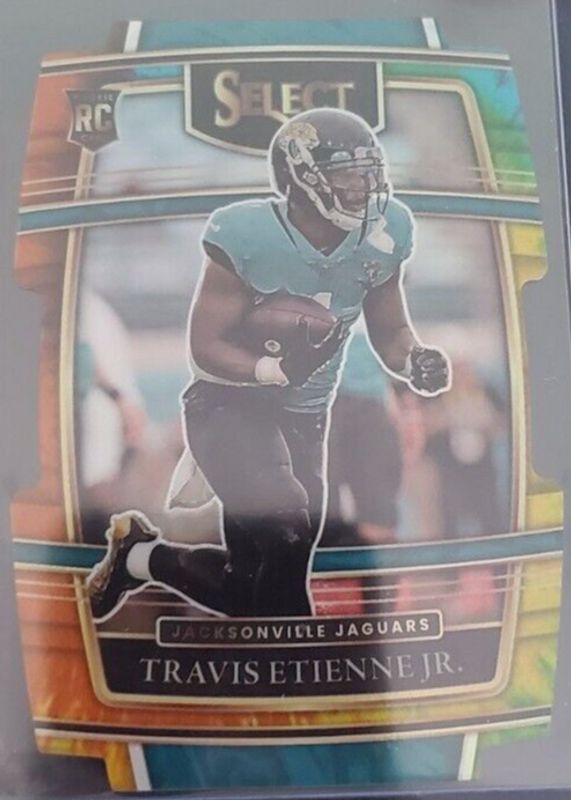 The Travis Etienne Jr. 2021 Select #54 Concourse Tie-Dye Die-Cut /25 Rookie card in Raw condition has not changed in price in the last 30 days and was last sold for $34.99 .
