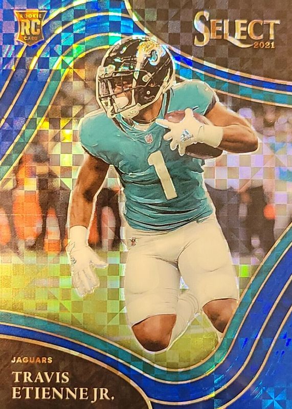 The Travis Etienne Jr. 2021 Select #354 Field Level Blue /49 Rookie card in Raw condition has moved down -$8.75 (-87.5%) in the last 30 days and was last sold for $1.25 .