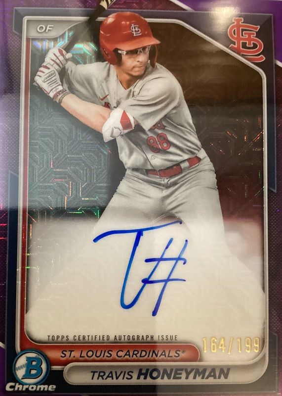 Best Prices Available For Sale of Travis Honeyman 2024 Bowman Mega Box #BMA-TH Chrome Prospect Auto - Purple Refractor /199