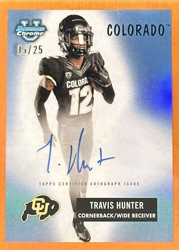 TRAVIS HUNTER 2023 Bowman University Chrome 1955 Orange Refractor AUTO # 1/25