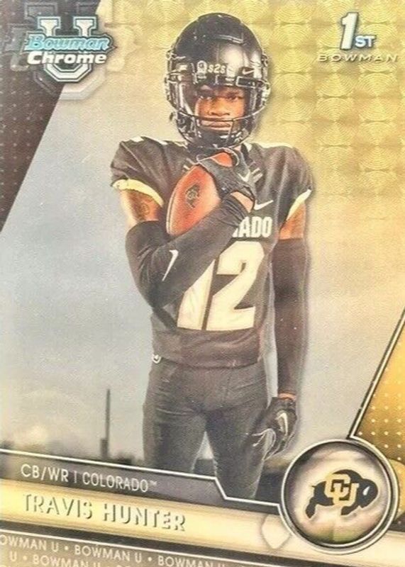This card is 1 of 45 Travis Hunter's card variations in the 2023 Bowman Chrome University set being tracked by Sports Card Investor, including Prospects (1st), Prospects - Pink Refractor (1st), Prospects - Purple Shimmer Refractor (1st), Prospects - Refractor (1st), and Prospects - Surge Refractor (1st).