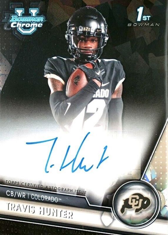 The Travis Hunter 2023 Bowman Chrome University Sapphire Edition #PA-THU Prospect Auto - Black /10 (1st) card in Raw condition has not changed in price in the last 30 days and was last sold for $895.50 .