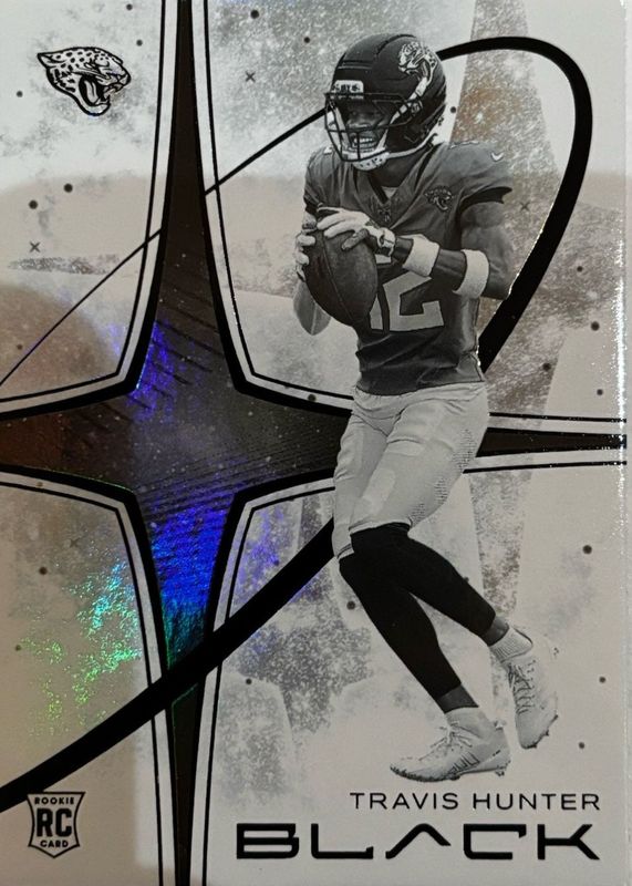 This card is 1 of 58 Travis Hunter's card variations in the 2025 Black set being tracked by Sports Card Investor, including Rookies, Rookie Patch Autographs /249, Components /199, Futuristic /199, and Sizeable Rookie Memorabilia /199.