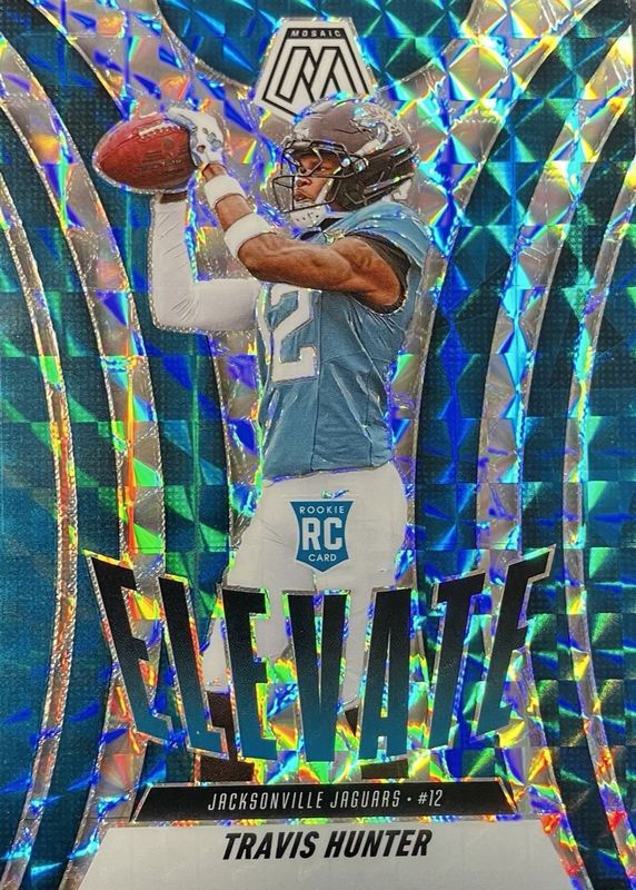 The Travis Hunter 2025 Mosaic #1 Elevate - Mosaic Rookie card in Raw condition has moved down -$1.26 (-56.0%) in the last 30 days and was last sold for $0.99 .