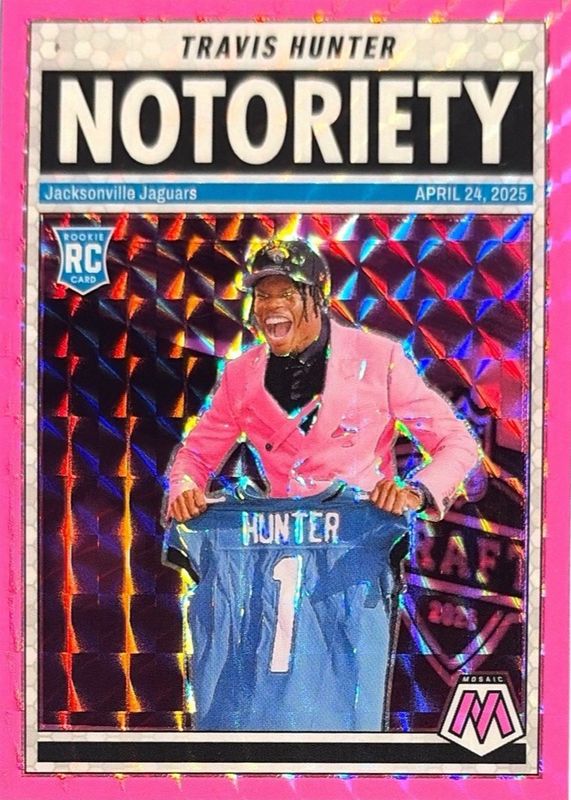 TRAVIS HUNTER 2025 MOSAIC NOTORIETY ROOKIE PINK FLUORESCENT JAGUARS RC Q4254