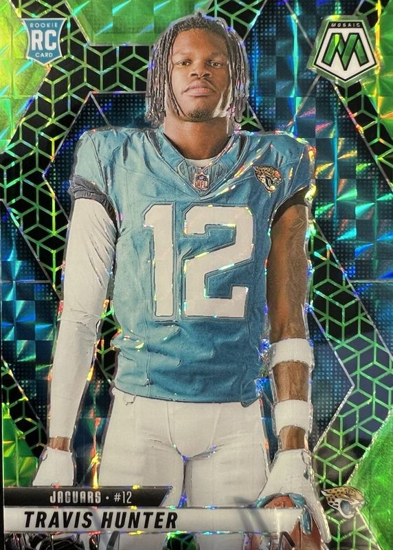 Best Prices Available For Sale of Travis Hunter 2025 Mosaic #279 Rookie Variation - FOTL Green Spectris /13