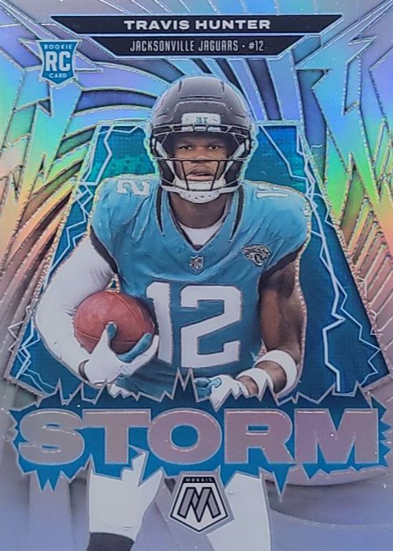The Travis Hunter 2025 Mosaic #3 Storm - Silver Rookie card in Raw condition has moved down -$8.90 (-77.4%) in the last 30 days and was last sold for $2.60 .