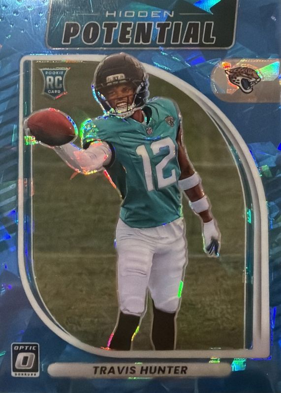The Travis Hunter 2025 Optic #3 Hidden Potential - Ice /55 Rookie card in Raw condition has not changed in price in the last 30 days and was last sold for $36.00 .