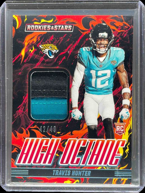 The Travis Hunter 2025 Rookies & Stars #11 High Octane Memorabilia - Prime /49 card in Raw condition has not changed in price in the last 30 days and was last sold for $10.00 .