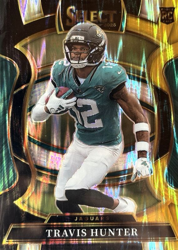 The Travis Hunter 2025 Select #28 Concourse Black & Gold Shock Rookie card in Raw condition has moved down -$0.76 (-43.4%) in the last 30 days and was last sold for $0.99 .