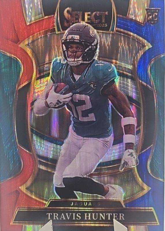 2025 Panini Select Travis Hunter RC concourse Level Red And Blue Shock Prizm