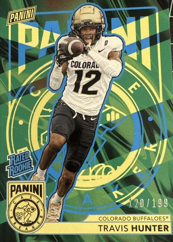 The Travis Hunter 2025 Panini NSCC Case Breaker #CB45 Base /199 card is 1 of 4 Travis Hunter's card variations in the 2025 Panini NSCC Case Breaker set being tracked by Sports Card Investor, including Case Breaker Insert /25, Case Breaker Insert - Gold Vinyl /10, and Case Breaker Insert - Black Vinyl /1.