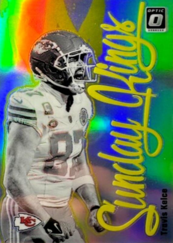 Travis Kelce's Football cards are available in at least 108 sets. Travis Kelce's biggest 7-day price movers are 2024 Donruss #7 Oversized Downtown, 2024 Prizm #140 Red Sparkle /(SSP), and 2013 SP Authentic #95 Base.