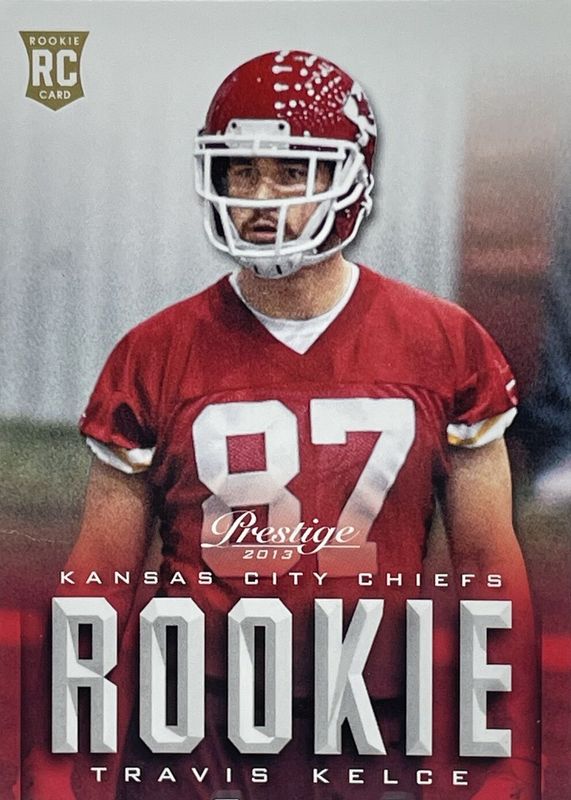 The Travis Kelce 2013 Prestige #293 Base Rookie card in Raw condition has moved up $4.99 (+33.3%) in the last 30 days and was last sold for $19.99 .
