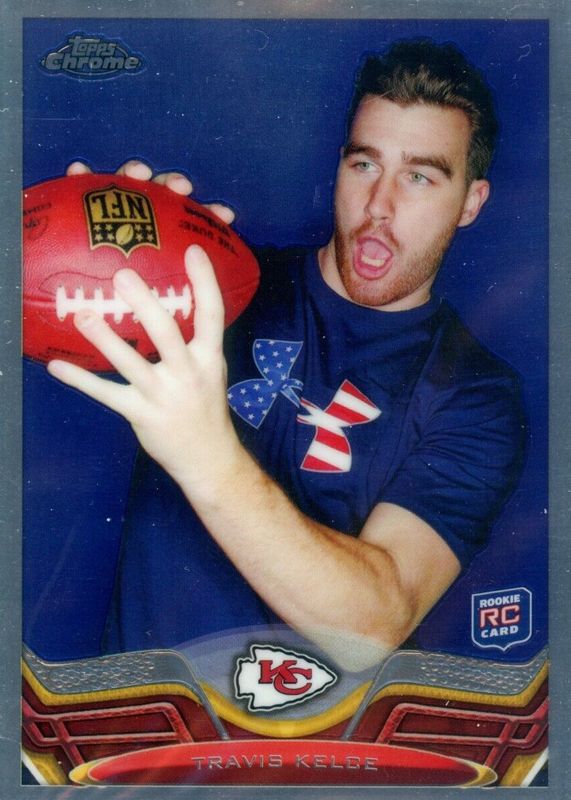 The Travis Kelce 2013 Topps Chrome #118 Base Rookie card in Raw condition has moved up $1.96 (+10.3%) in the last 30 days and was last sold for $21.00 .
