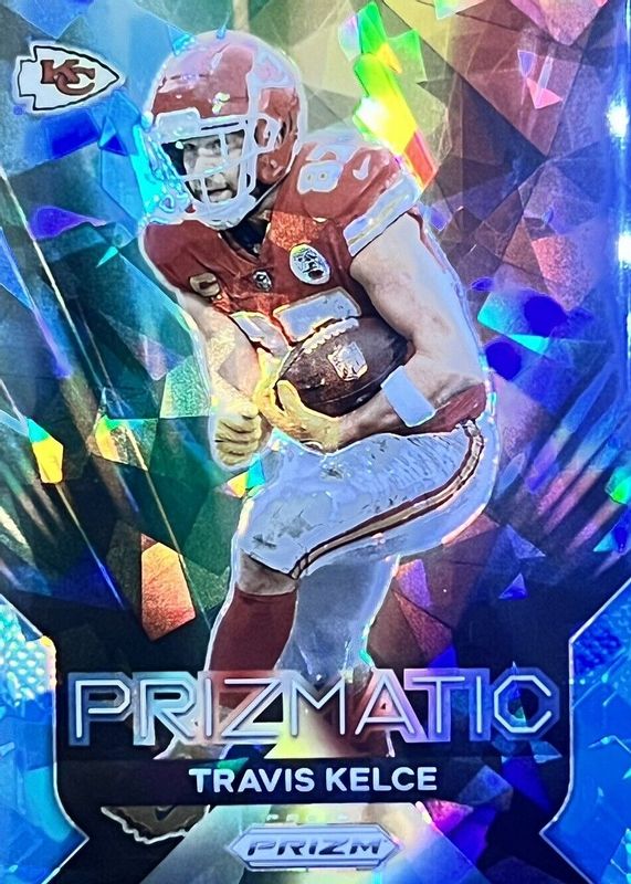 The Travis Kelce 2023 Prizm #10 Prizmatic - Blue Ice /99 card in Raw condition has not changed in price in the last 30 days and was last sold for $12.63 .