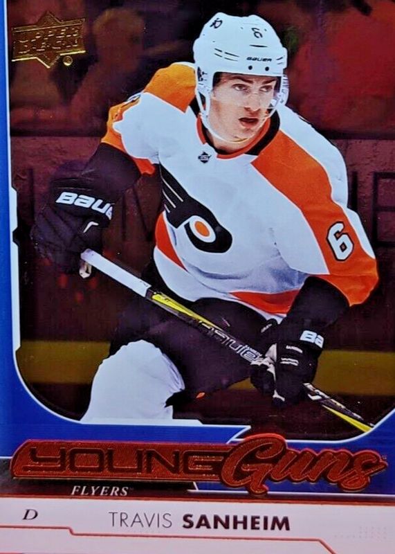This card is 1 of 8 Travis Sanheim's card variations in the 2017 Upper Deck set being tracked by Sports Card Investor, including Young Guns Base, Young Guns - Clear Cut, Young Guns - Gold Rainbow Foil, Young Guns - Jumbo, and Young Guns - UD Exclusives /100.