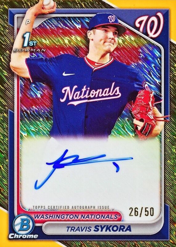Travis Sykora 2024 Bowman Chrome Gold Shimmer /50 Auto Rc #CPA-TSY Nationals