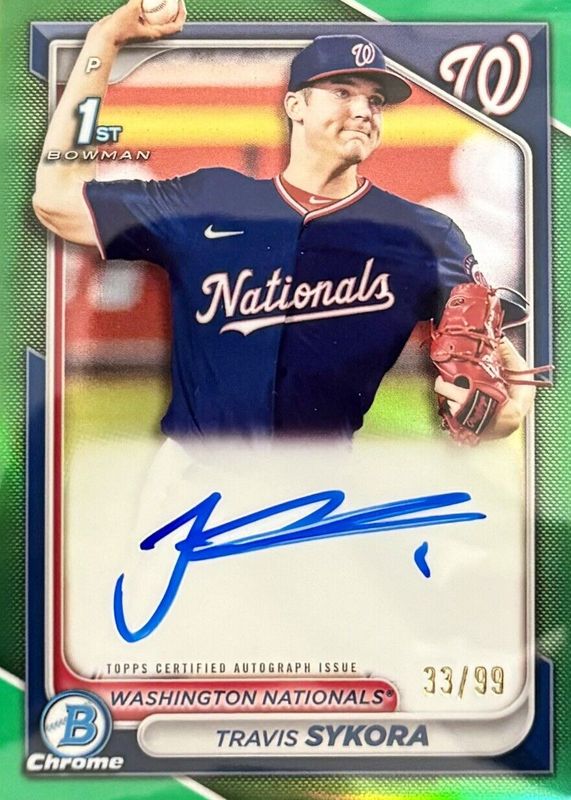Best Prices Available For Sale of Travis Sykora 2024 Bowman #CPA-TSY Chrome Prospect Auto - Green Refractor /99 (1st)