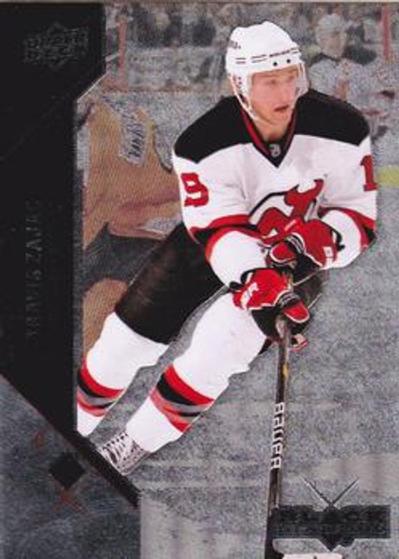 The Travis Zajac 2011 Upper Deck Black Diamond #14 Base card is 1 of 4 Travis Zajac's card variations in the 2011 Upper Deck Black Diamond set being tracked by Sports Card Investor, including Ruby /100, Gold /10, and Platinum /1.
